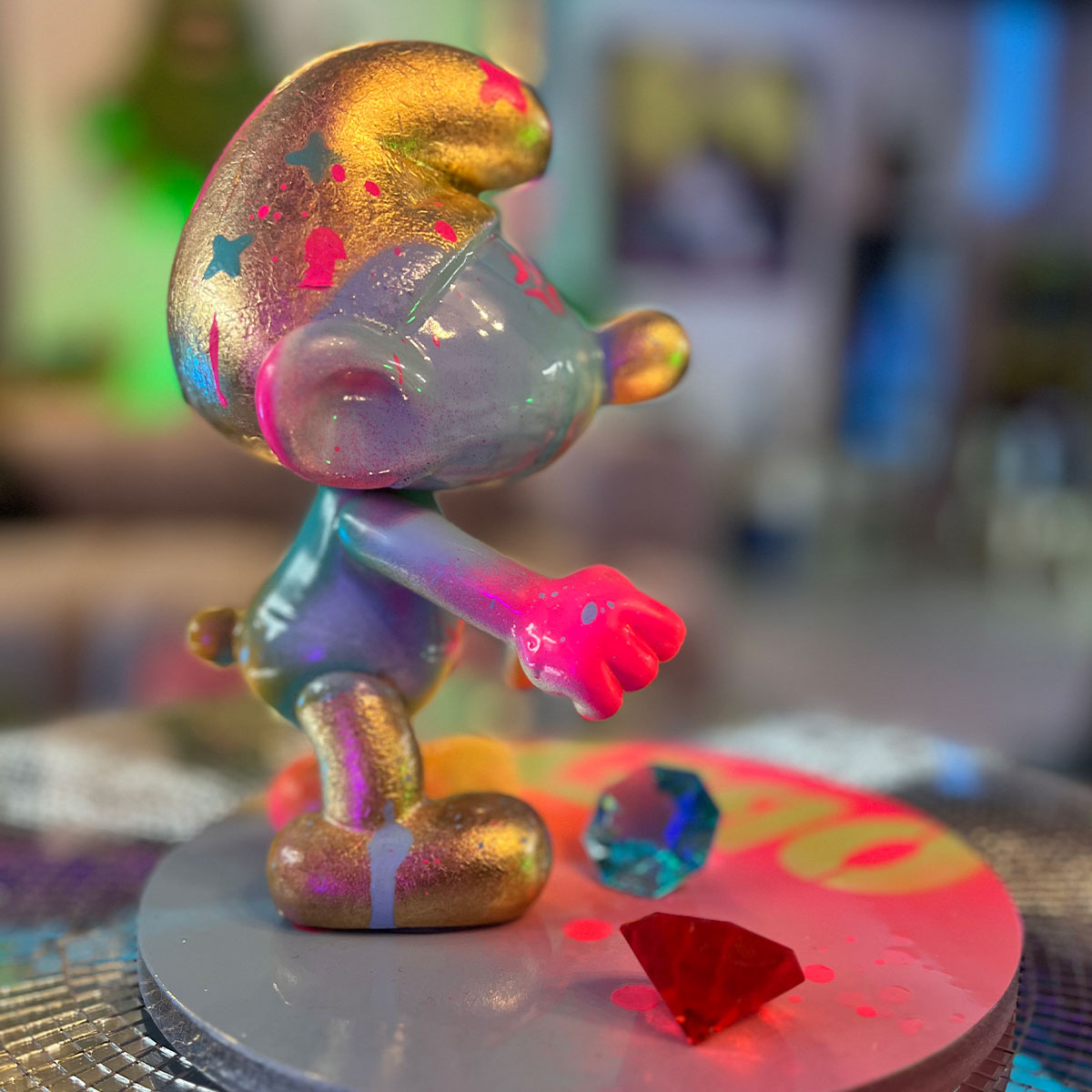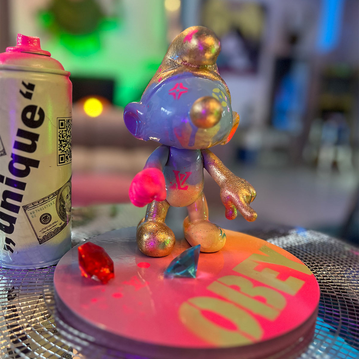 Mit meiner Smurf Skulptur im Louis-Vuitton-Style möchte ich zeigen, dass Kunst nicht nur an Wänden hängt.