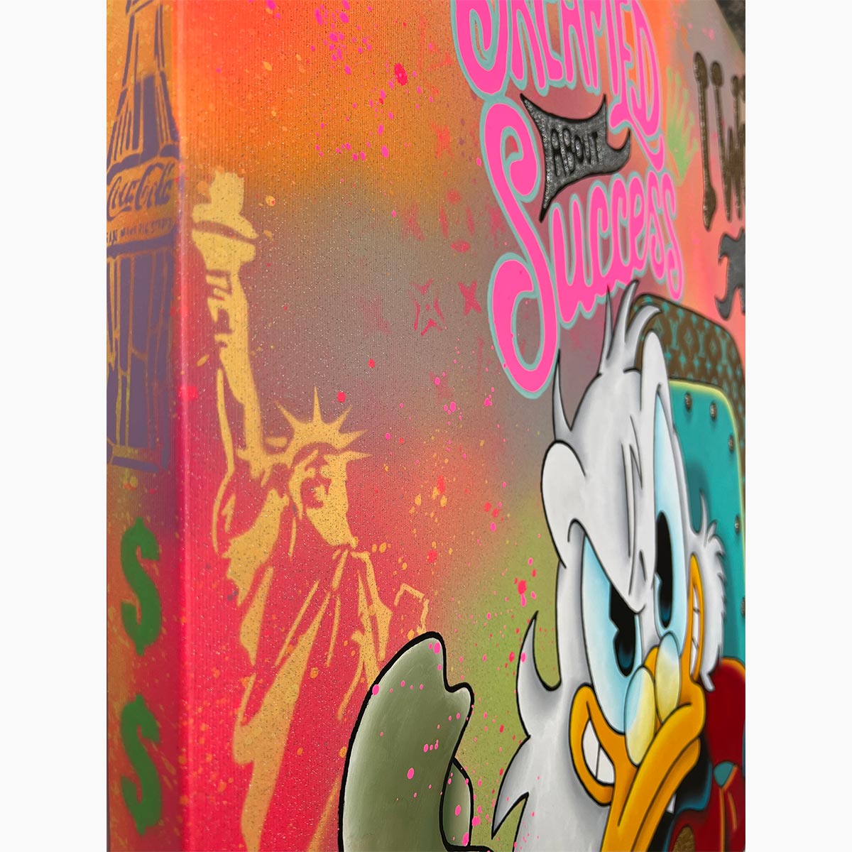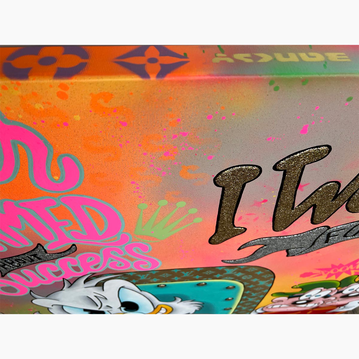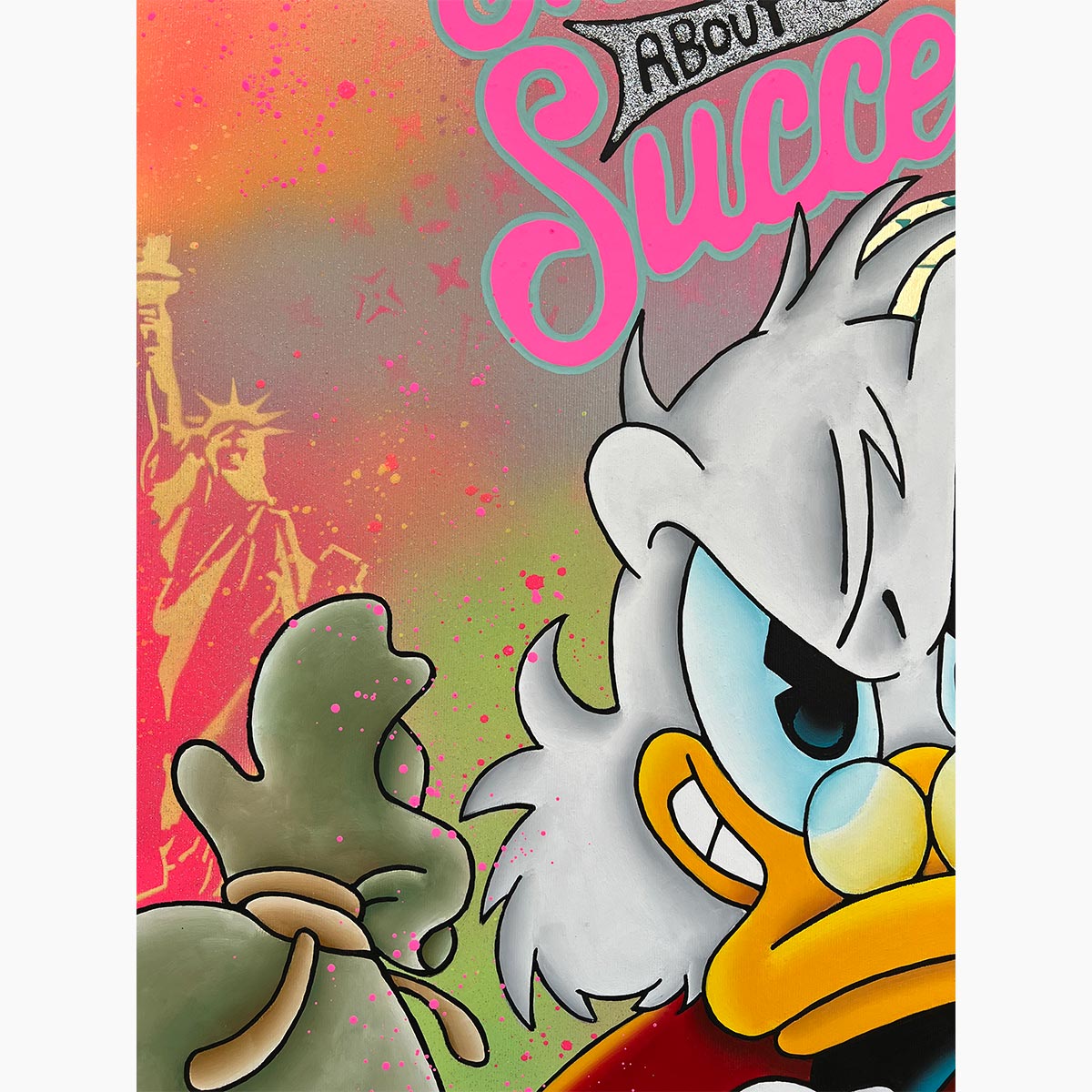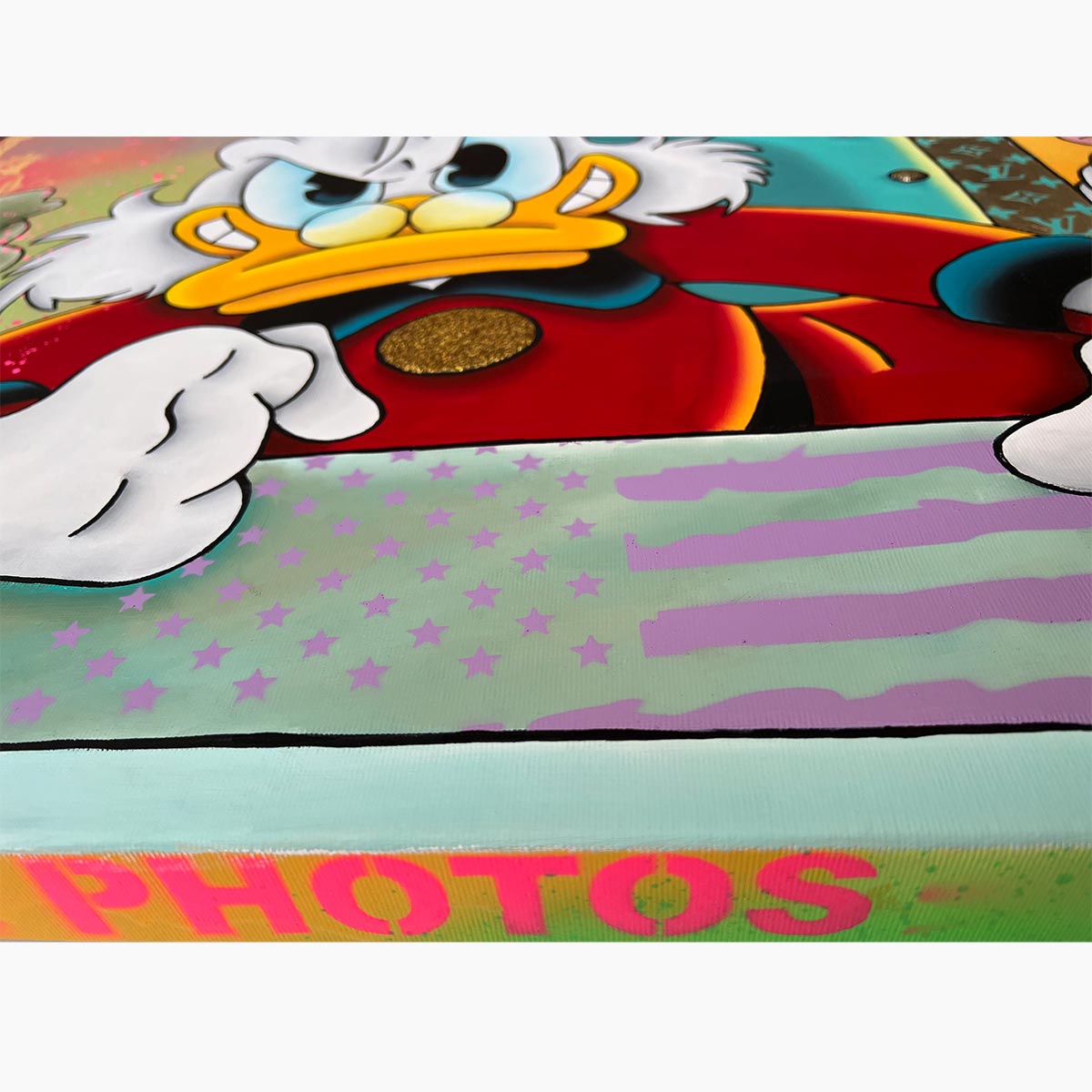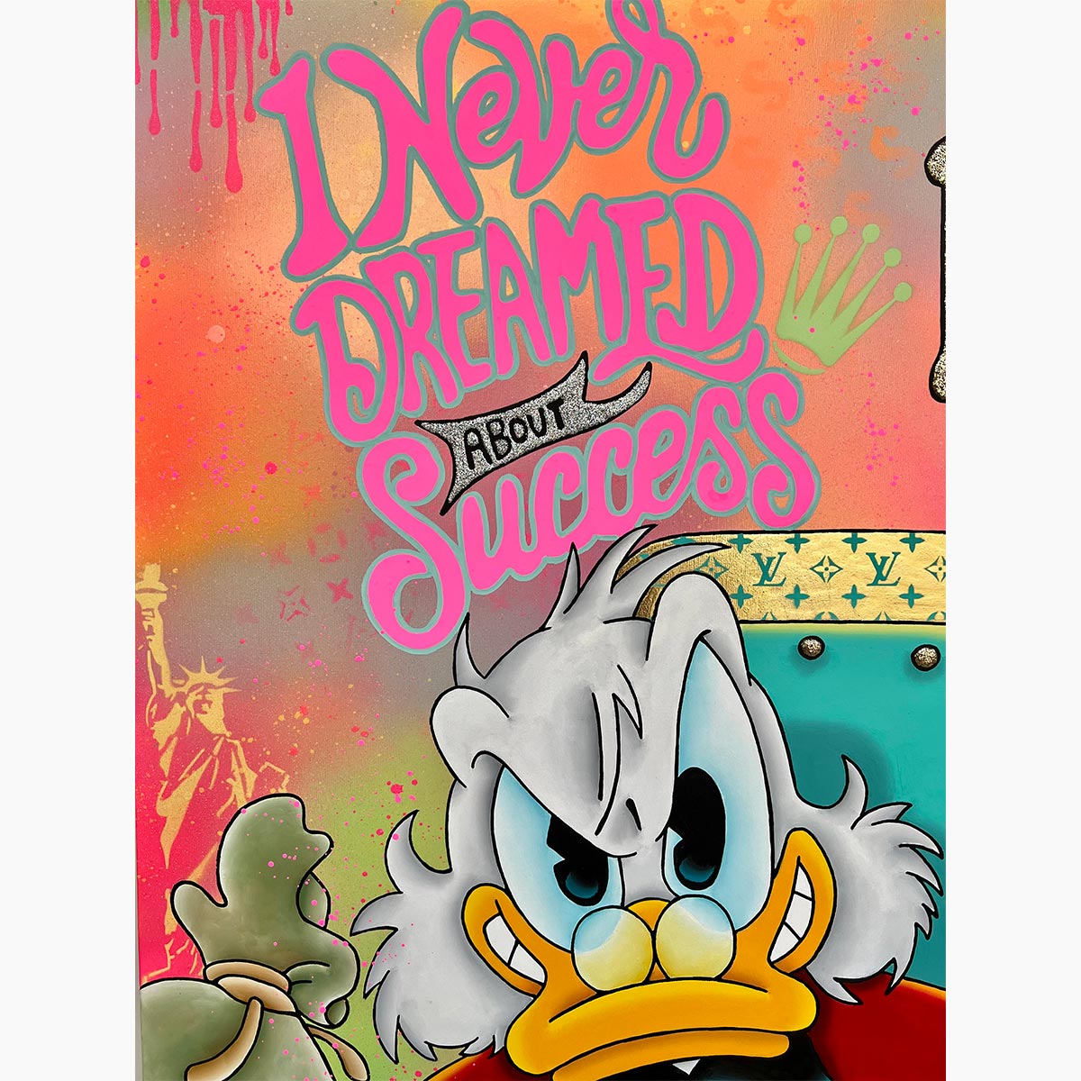 Mit diesem Werk möchte ich zeigen, dass Erfolg nichts mit Zufall oder Glück zu tun hat. Erfolg ist das Ergebnis von Leidenschaft, Disziplin und harter Arbeit – genau das verkörpert Onkel Dagobert für mich. Er träumt nicht vom Erfolg, er arbeitet dafür. Und genau diese Haltung – dieses unermüdliche Streben nach den eigenen Zielen – möchte ich mit diesem Bild an den Betrachter weitergeben.